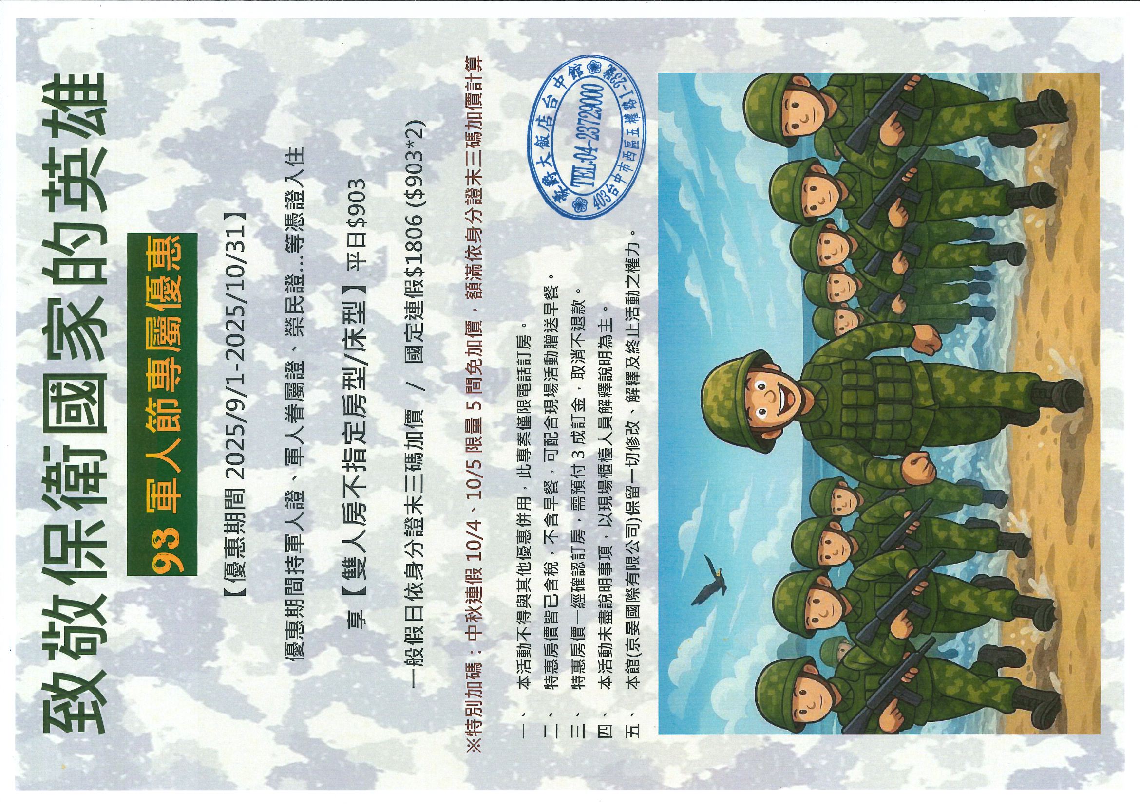 》台中市政府114年敬老月豪爵大飯店台中館訂房優惠活動